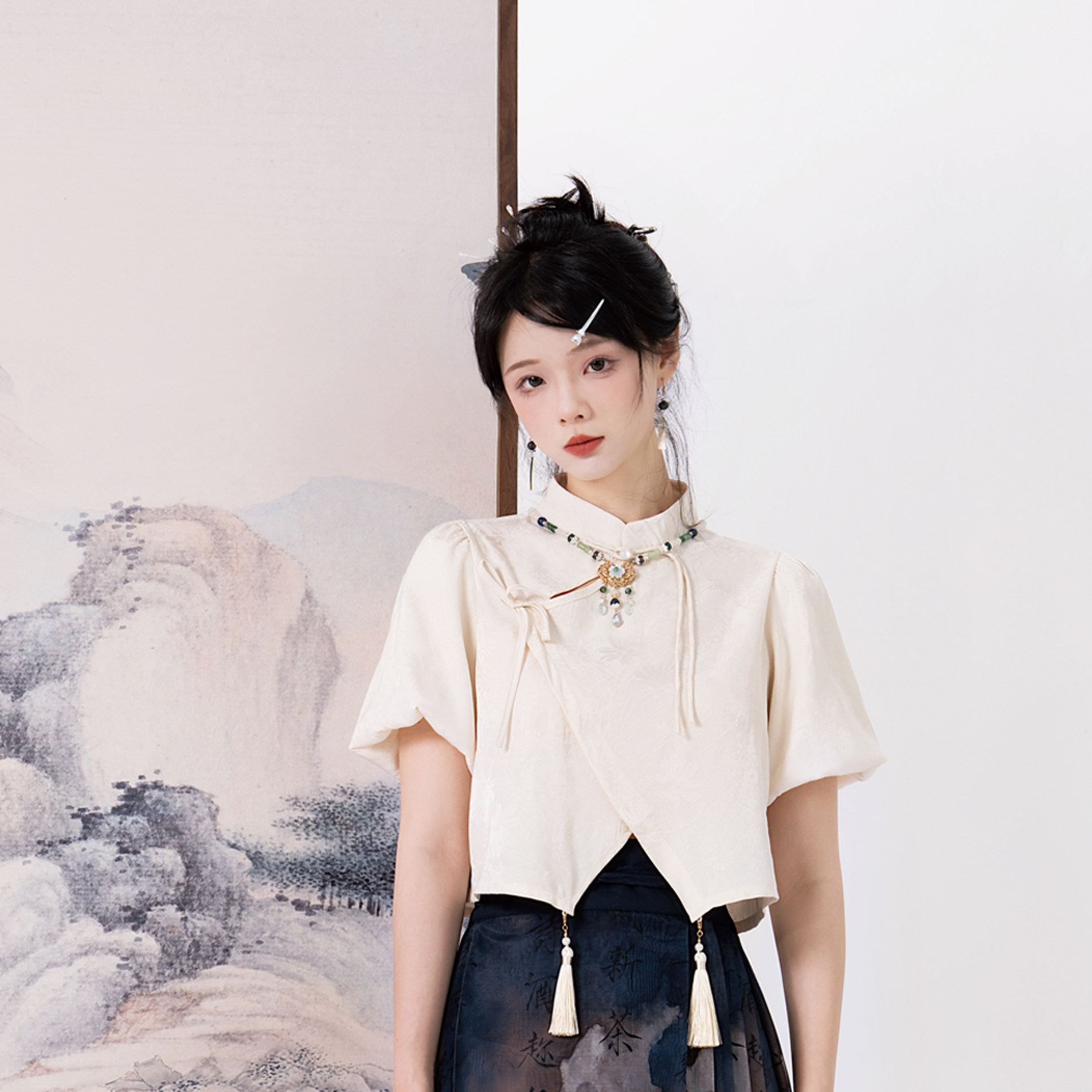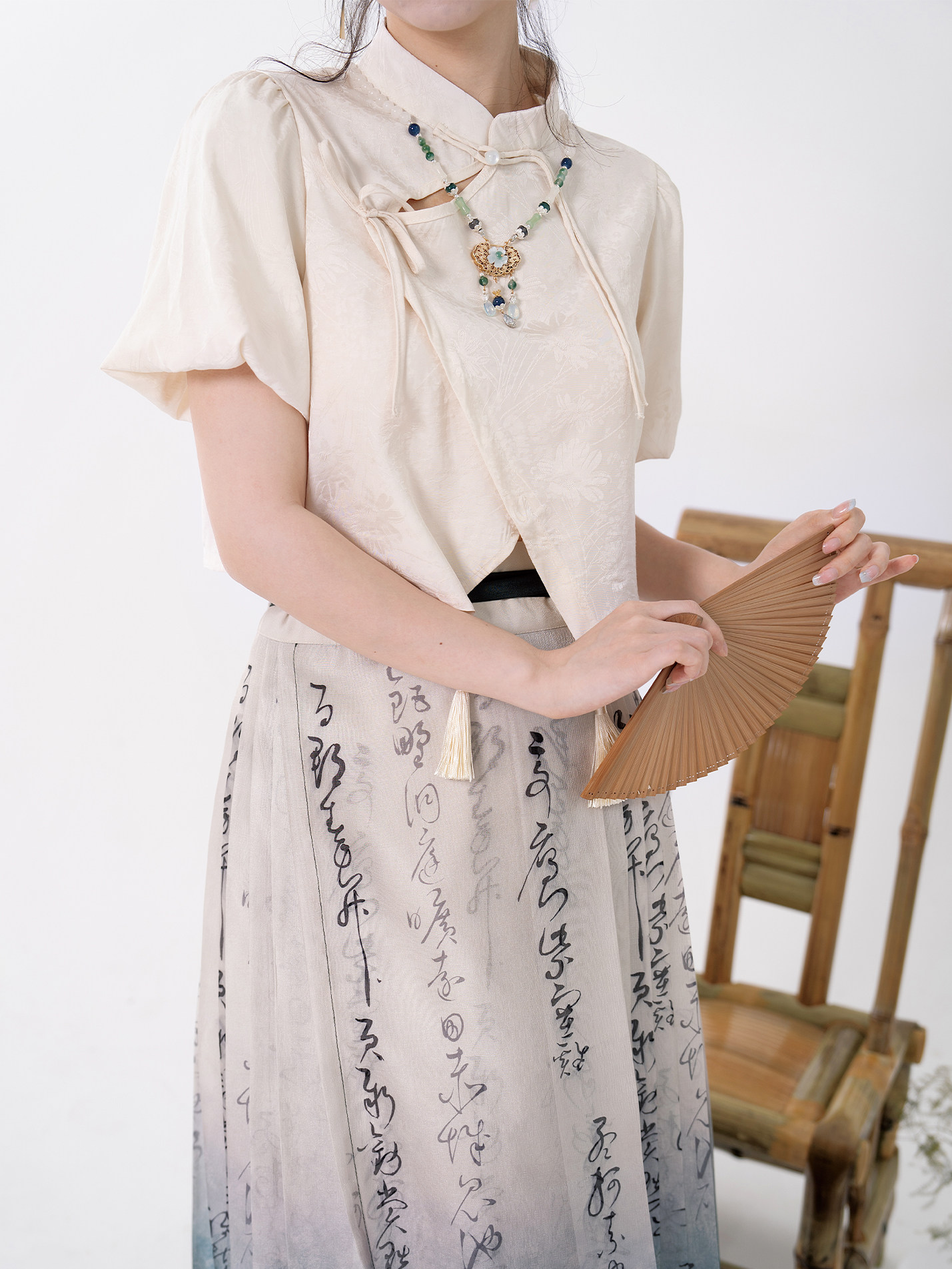 белая подвеска с кисточками, рубашка, ожерелье