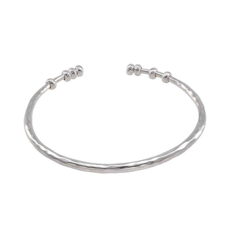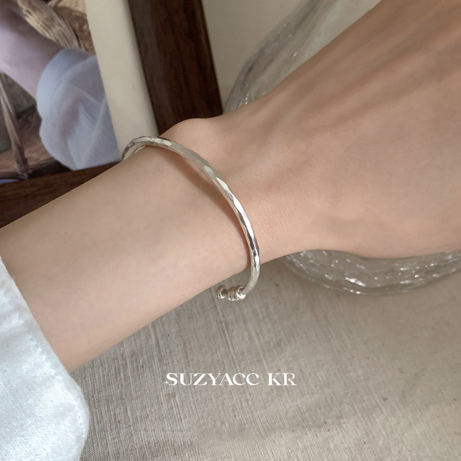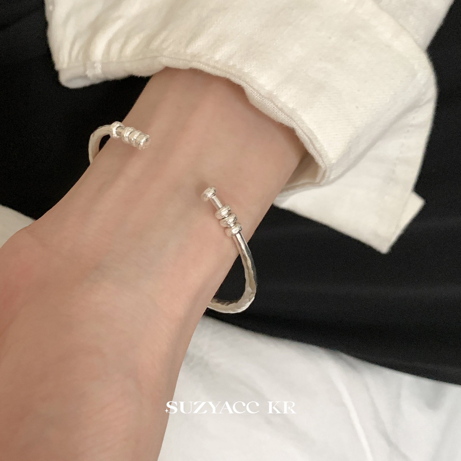 银饰手链 suzyacc kr轻奢气质纯银手工捶打纹手镯简约重工高级叠戴百搭手饰