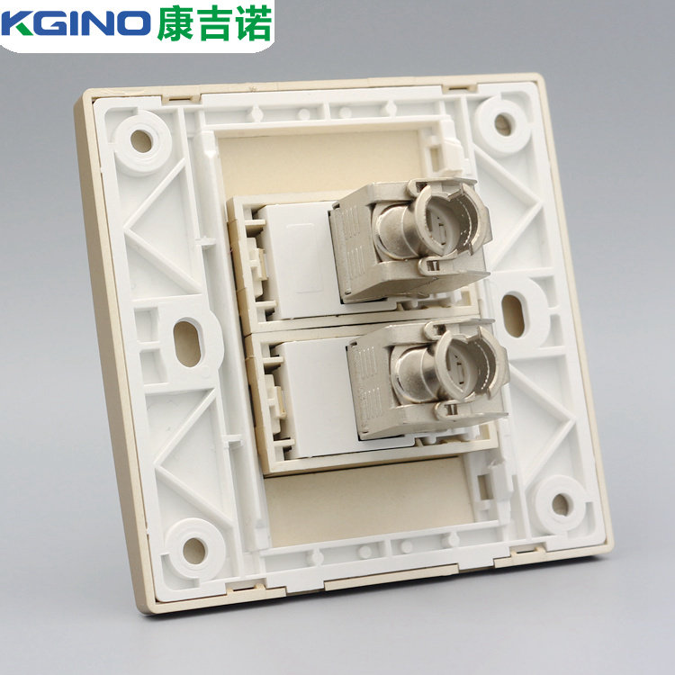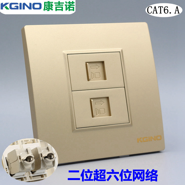 Розетка сетевая LAN 超六类屏蔽网路线插座香槟色双口电脑面板含千兆模块二位网路口墙插 KGINO