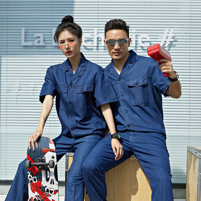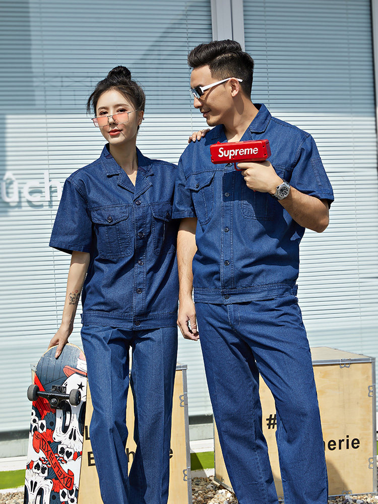 Джинсовая джинсовая юбка, синие штаны, короткий рукав