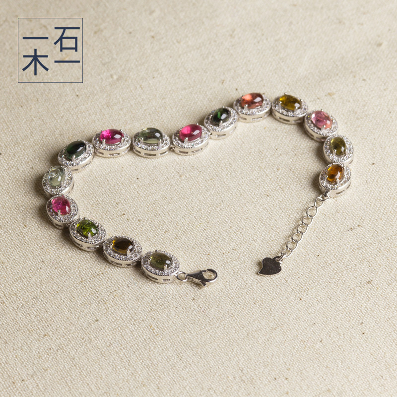 Украшения на руку 一石一木天然碧玺糖果色无彩色多色心心相印手链