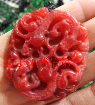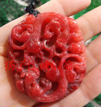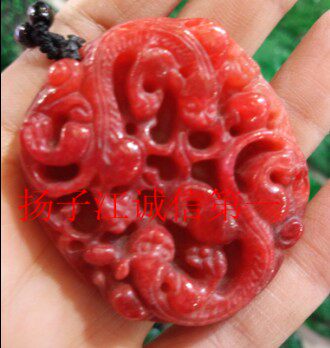 Украшения на шею 天然鸡血玉精雕龙霸天下挂件  鸡血石龙腾四海龙牌吊坠双面工艺