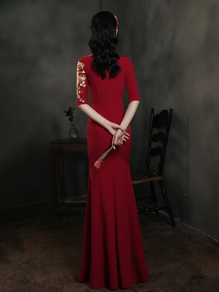 красное дизайнерское элитное вечернее платье для невесты, тренд сезона, подходит для подростков, изысканный стиль, китайский стиль