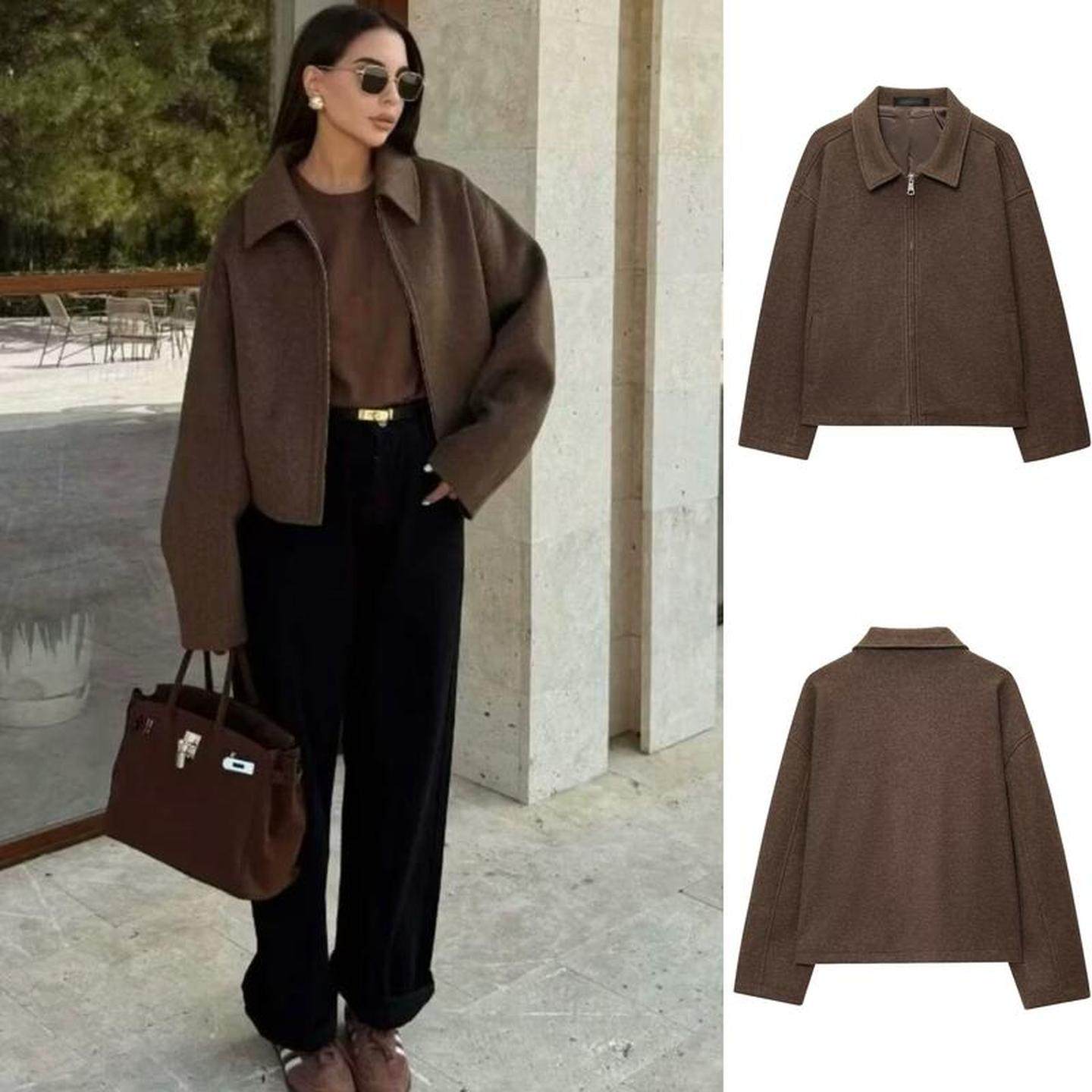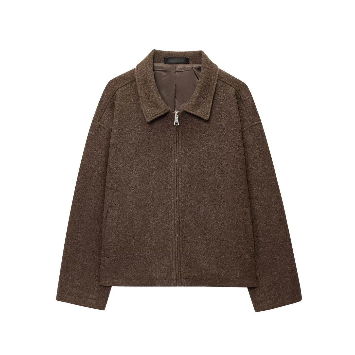 Темно-коричневый молния отворот шерстяной
